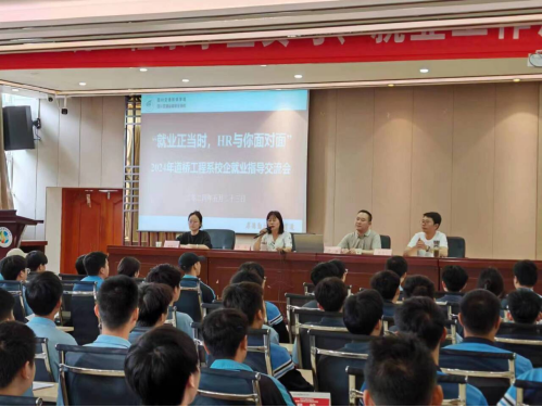 5月23日,道桥工程系特邀企业代表、优秀学生代表到校,开展就业指导讲座。湖南联智科技四川分公司总经理、正高级工程师谭少海,中铁二十一局项目总监、高级测量工程师聂京华,以及优秀实习生代表唐鳗琪参加会议。